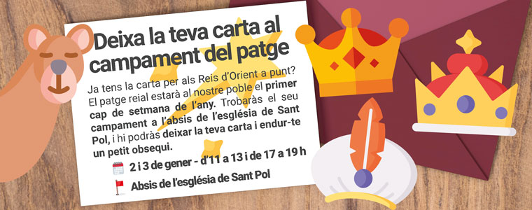 Aquest any, el patge de Ses Majestats no podrà recollir les cartes dels infants santjoanins en persona a causa de la pandèmia, ni es podrà fer cap espectacle familiar. Per continuar amb la tradició, però, el patge ha instal·lat un petit campament a dintre de l’absis de l’església de Sant Pol, amb un espai per deixar totes les missives, en una mena de bústia reial.